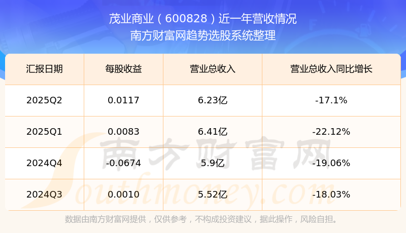 茂業(yè)商業(yè)披露了2025年第二季度財報。報告顯示,茂業(yè)商業(yè)2025年第二季度實現(xiàn)營收6.23億元,同比-17.1%;歸母凈利潤2024.78萬元,同比-78.38%。