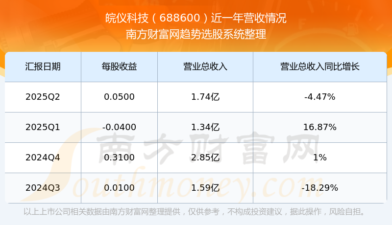 2025年第二季度,皖儀科技營(yíng)收同比-4.47%,凈利潤(rùn)同比36.74%。