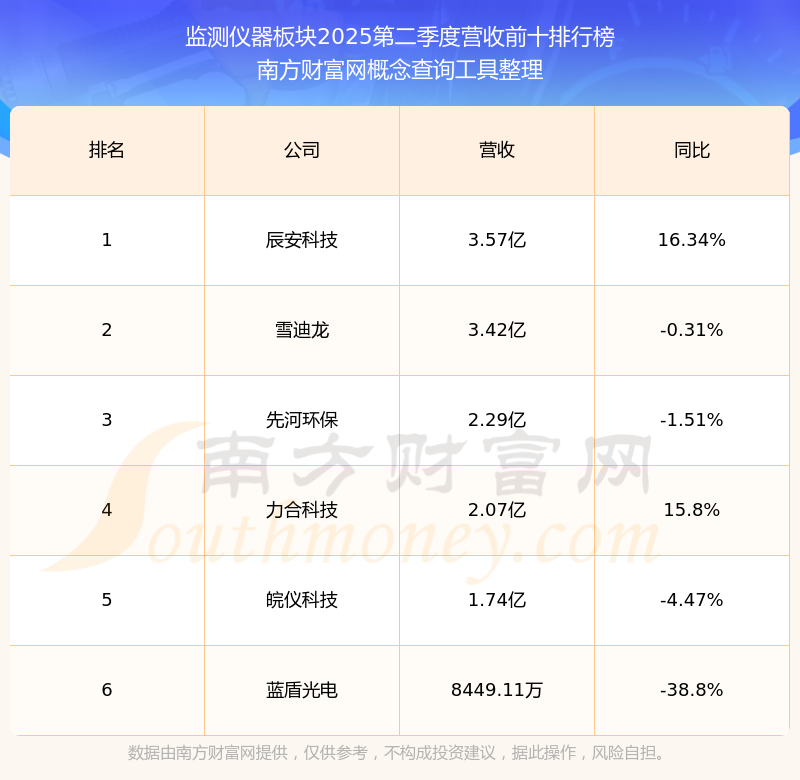 按照南方財(cái)富網(wǎng)概念查詢工具統(tǒng)計(jì),該股所屬板塊為監(jiān)測(cè)儀器板塊,該板塊共有6只股票,皖儀科技2025第二季度營(yíng)收在該板塊中排名為第5名,該板塊2025第二季度營(yíng)收排名前十的股票如下表: