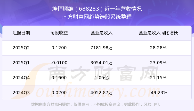坤恒順維2025年第二季度公司實現(xiàn)營業(yè)收入7181.98萬元,同比28.28%;歸母凈利潤1353.59萬元,同比23.44%。