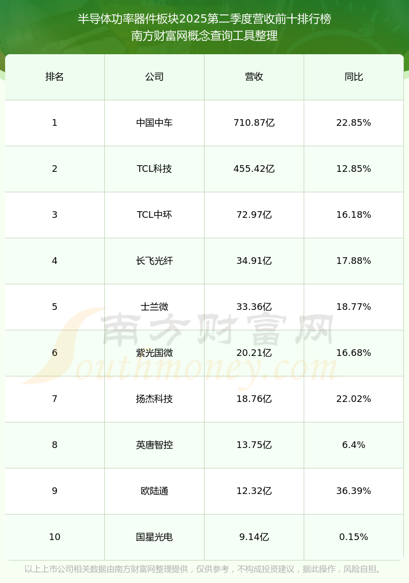 按照南方財富網(wǎng)概念查詢工具統(tǒng)計,該股所屬板塊為半導(dǎo)體功率器件板塊,該板塊共有19只股票,立昂微2025第二季度營收在該板塊中排名為第13名,該板塊2025第二季度營收排名前十的股票如下表: