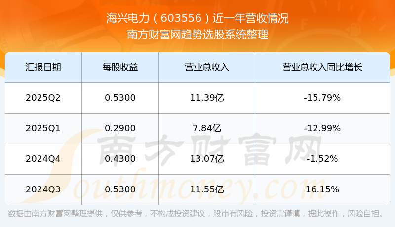 海興電力股票近一年營收情況如下表: