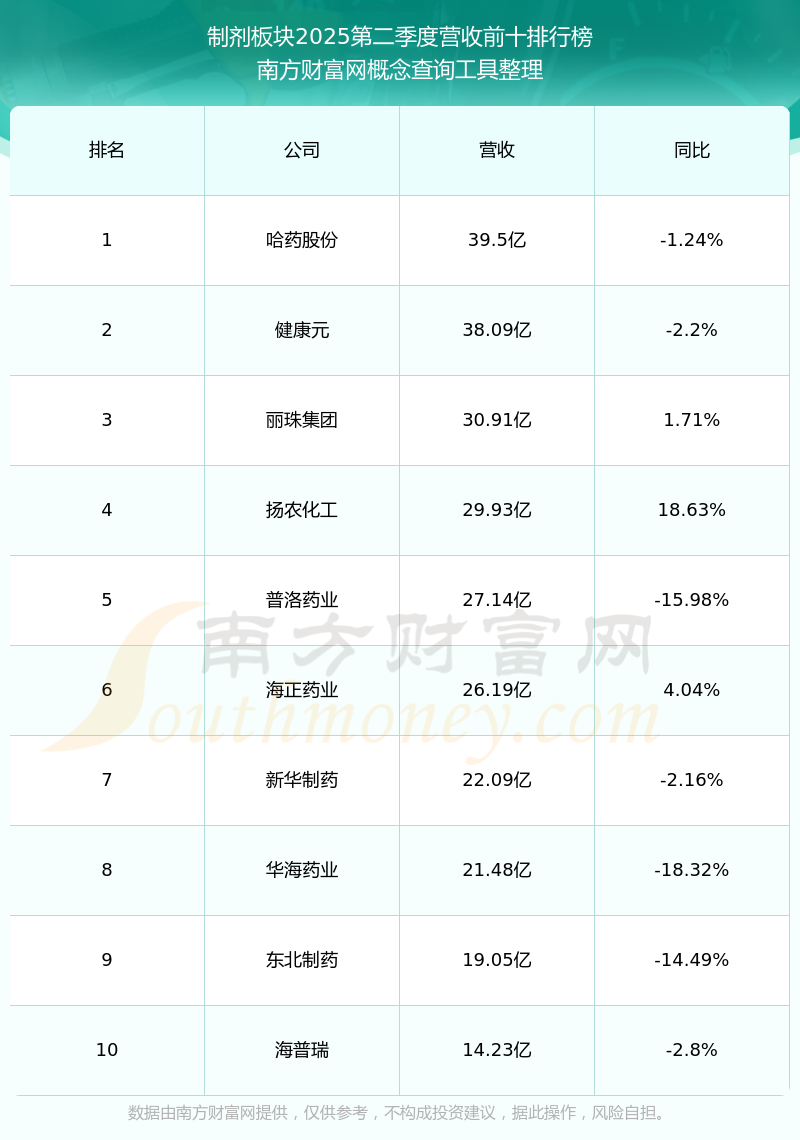 按照南方財富網(wǎng)概念查詢工具統(tǒng)計,該股所屬板塊為制劑板塊,該板塊共有41只股票,苑東生物2025第二季度營收在該板塊中排名為第28名,該板塊2025第二季度營收排名前十的股票如下表: