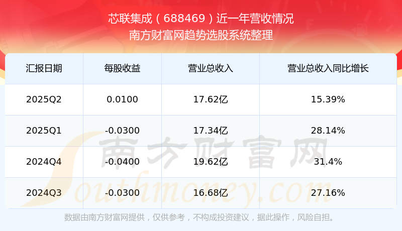 芯聯(lián)集成2025年第二季度公司實現(xiàn)營業(yè)收入17.62億元,同比15.39%;歸母凈利潤1194.95萬元,同比105.23%。