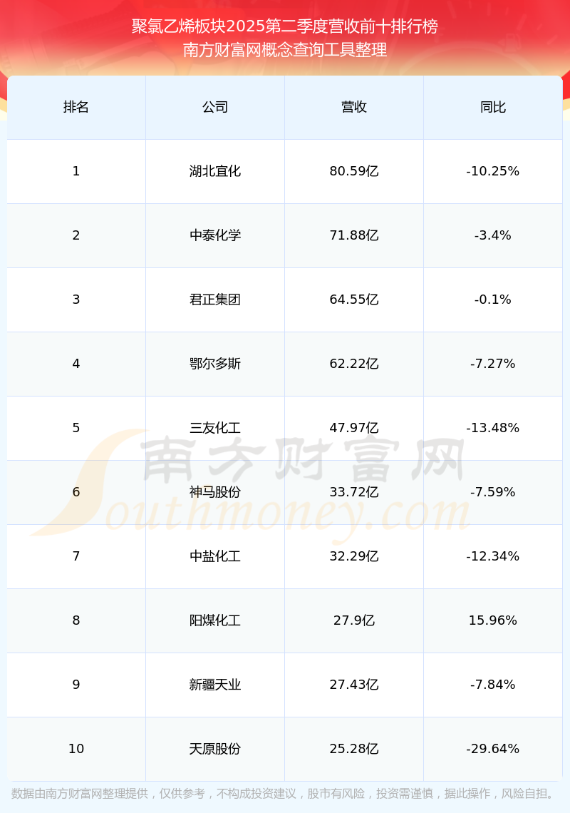 按照南方財富網(wǎng)概念查詢工具統(tǒng)計,該股所屬板塊為聚氯乙烯板塊,該板塊共有21只股票,氯堿化工2025第二季度營收在該板塊中排名為第12名,該板塊2025第二季度營收排名前十的股票如下表:
