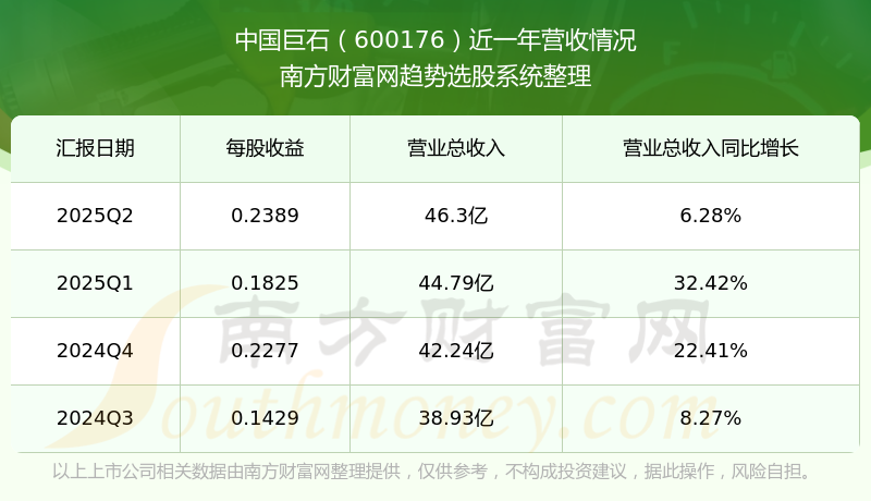 中國巨石股票近一年營收情況如下表:
