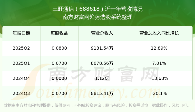 按照南方財(cái)富網(wǎng)概念查詢(xún)工具統(tǒng)計(jì),該股所屬板塊為通信設(shè)備板塊,該板塊共有167只股票,三旺通信2025第二季度營(yíng)收在該板塊中排名為第146名,該板塊2025第二季度營(yíng)收排名前十的股票如下表: