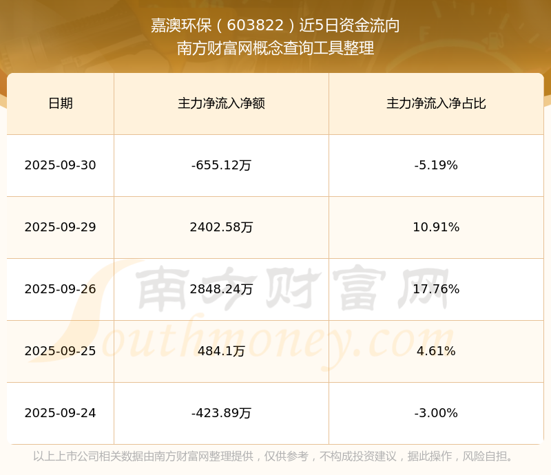 二、嘉澳環(huán)保(603822)近期盤面、資金面情況