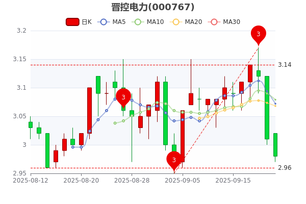 截止9月22日09時57分晉控電力(000767)跌1%,報3.000元/股,3日內(nèi)股價下跌4.32%,換手率0.16%,成交額1390.7萬元。