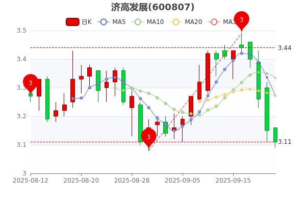 9月22日早盤消息,濟高發(fā)展今年來漲幅下跌-11.11%,截至11時15分,該股跌0.95%,報3.110元,總市值為27.51億元,PE為-3.34。