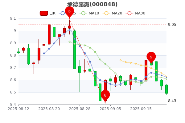 9月22日承德露露開盤報(bào)價(jià)8.56元,收盤于8.490元,跌0.7%。當(dāng)日最高價(jià)為8.57元,最低達(dá)8.48元,成交量382.34萬(wàn)手,總市值為89.36億元。