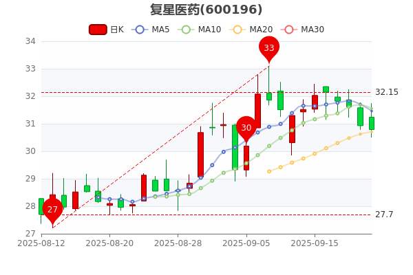 9月22日收盤消息,復(fù)星醫(yī)藥今年來(lái)漲幅上漲19.29%,最新報(bào)30.790元,成交額11.47億元。