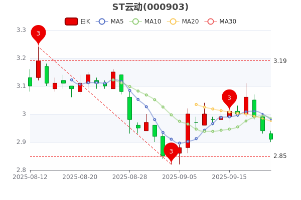 9月22日收盤最新消息,ST云動7日內(nèi)股價下跌2.75%,截至15點,該股跌1.02%報2.910元 。