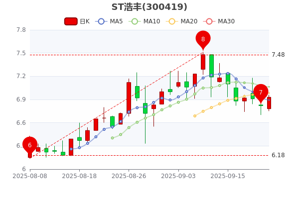 9月22日收盤消息,ST浩豐最新報6.930元,漲1.47%。成交量1064.75萬手,總市值為25.49億元。
