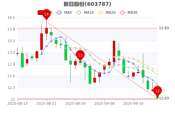 9月23日盤中消息,新日股份最新報(bào)價(jià)12.030元,跌1.8%,3日內(nèi)股價(jià)下跌2.61%;今年來漲幅上漲14.94%,市盈率為109.36。