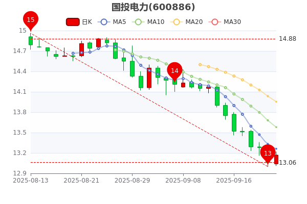 9月23日,國(guó)投電力開盤報(bào)13.04元,截至10時(shí)09分,該股漲0.84%,報(bào)價(jià)為13.170元,當(dāng)日最高價(jià)為13.22元。換手率0.07%,市盈率為15.19,7日內(nèi)股價(jià)下跌6.43%。