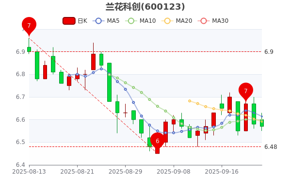 截止10時16分,蘭花科創(chuàng)報6.600元,跌0.15%,總市值97.23億元。