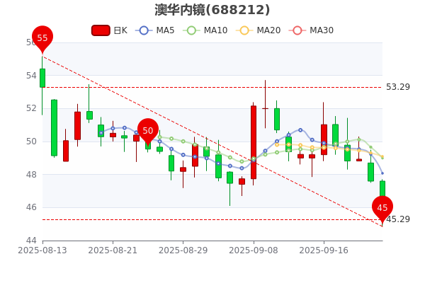 9月23日上午收盤消息,澳華內鏡(688212)跌4.85%,報45.290元,成交額7869.94萬元,換手率1.27%,成交量170.82萬手。