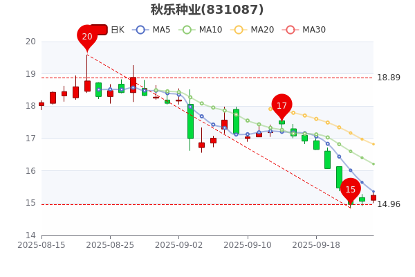 9月25日消息,秋樂種業(yè)(831087)早盤漲1.2%,報15.250元/股,成交量156.02萬手,換手率0.97%,振幅漲1.26%。
