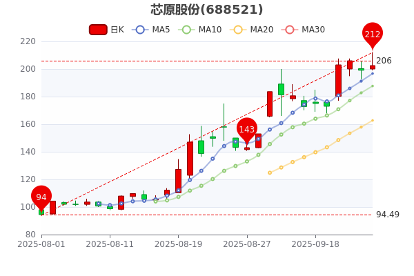 2025年9月25日,近3日芯原股份股價(jià)下跌1.74%,現(xiàn)報(bào)202.480元,總市值為1064.46億元,換手率4.19%。