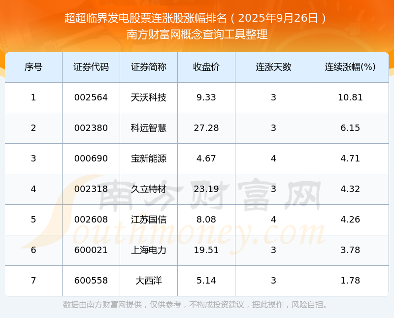 2025年9月26日超超臨界發(fā)電股票連漲股漲幅排名