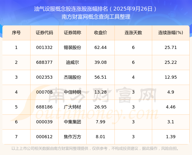 2025年9月26日油氣設(shè)服概念股連漲股漲幅排名