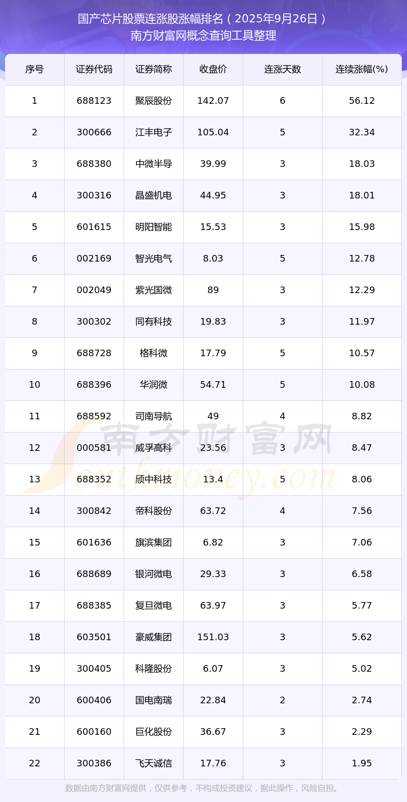 2025年9月26日國產(chǎn)芯片股票連漲股漲幅排名