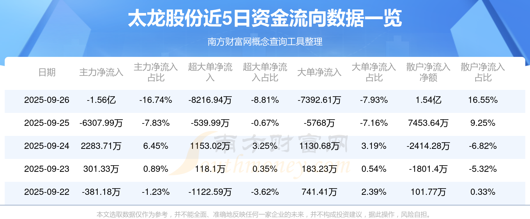資金流向數(shù)據(jù)方面,9月26日主力資金凈流流出1.56億元,超大單資金凈流出8216.94萬(wàn)元,大單資金凈流出7392.61萬(wàn)元,散戶(hù)資金凈流入1.54億元。