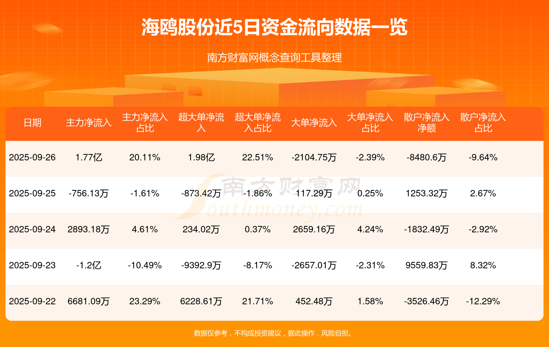 近5日資金流向一覽見下表: