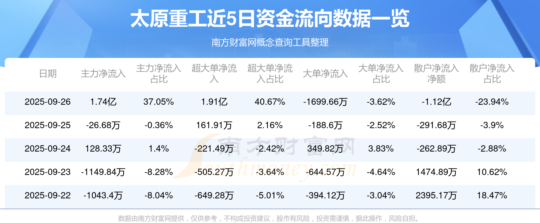 9月26日消息,太原重工資金凈流出1.74億元,超大單資金凈流入1.91億元,最新報(bào)2.710元,換手率5.28%,成交總金額4.67億元。
