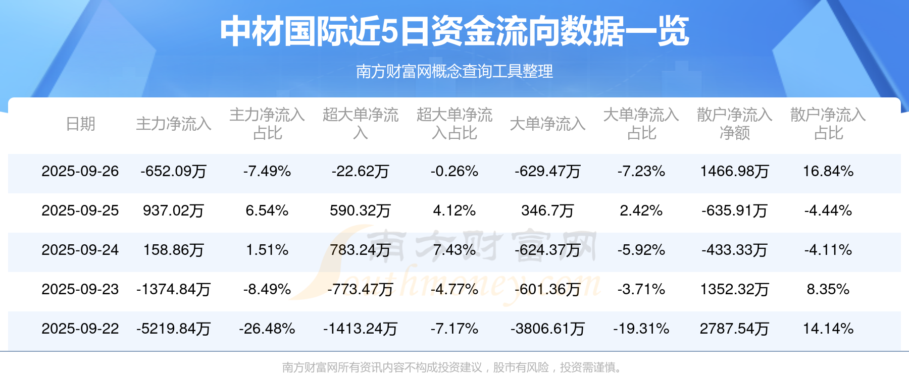 9月26日消息,中材國際主力凈流出652.09萬元,超大單凈流出22.62萬元,散戶凈流入1466.98萬元。