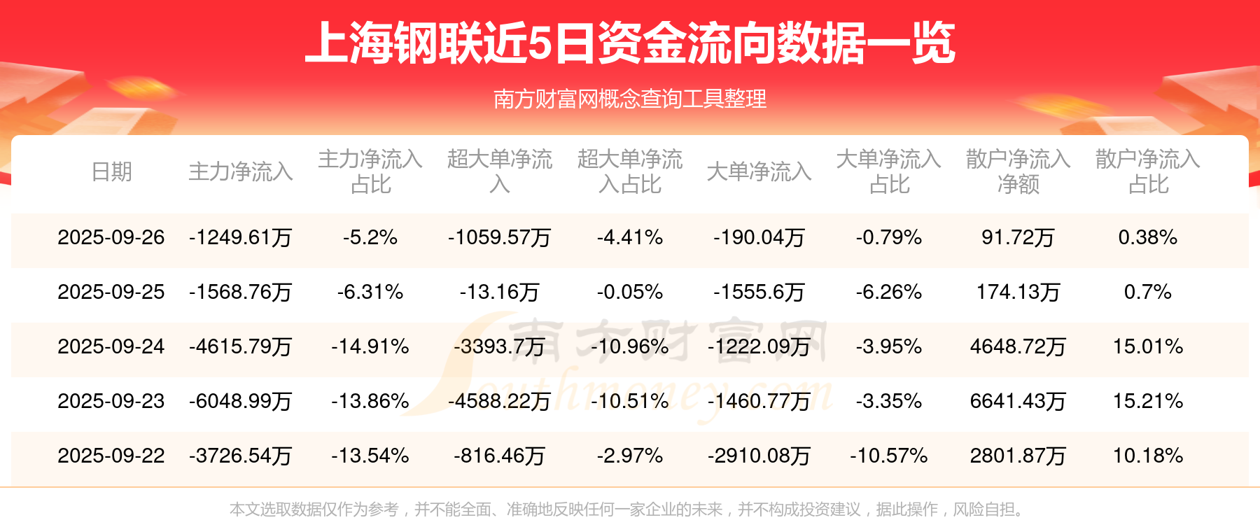 9月26日消息,上海鋼聯(lián)資金凈流出1249.61萬元,超大單凈流出1059.57萬元,換手率3.07%,成交金額2.4億元。