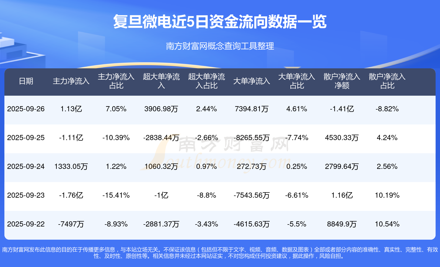 9月26日該股主力資金凈流入1.13億元,超大單資金凈流入3906.98萬元,大單資金凈流入7394.81萬元,中單資金凈流入2842.6萬元,散戶資金凈流出1.41億元。