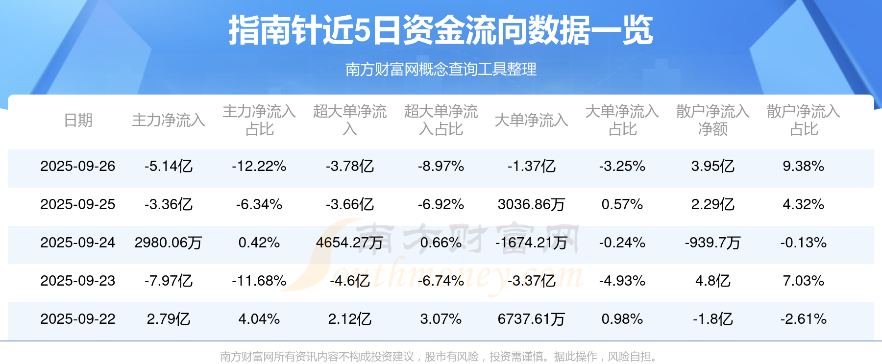 近5日資金流向一覽見下表: