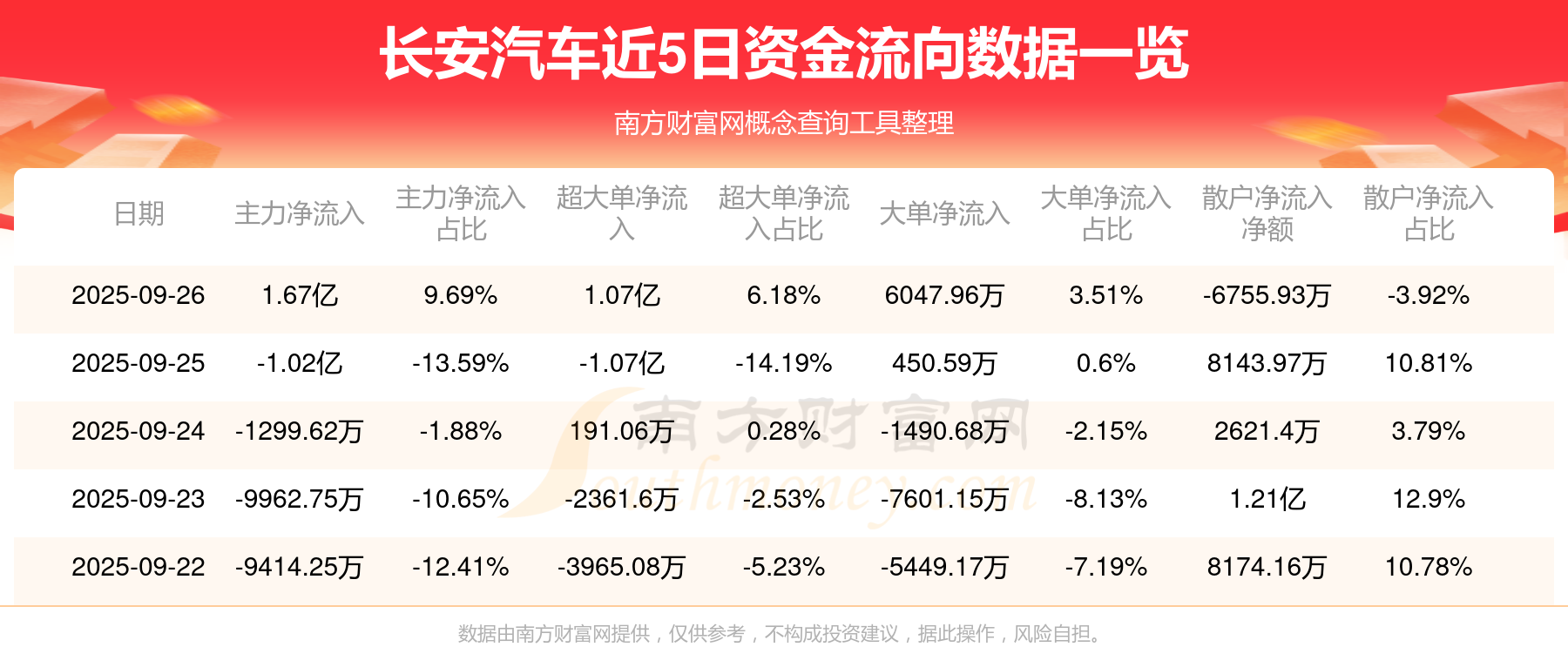 9月26日消息,長(zhǎng)安汽車資金凈流入1.67億元,超大單資金凈流入1.07億元,換手率1.7%,成交金額17.25億元。