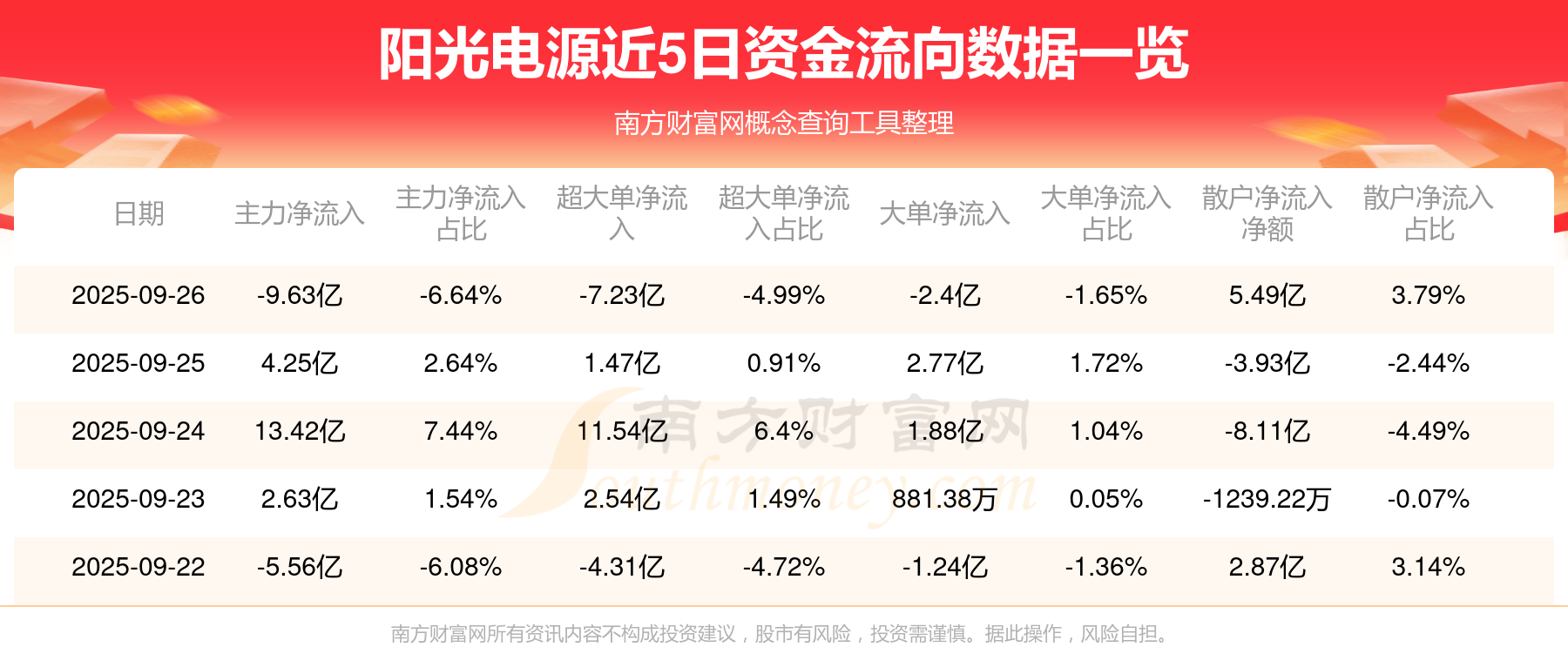 9月26日開盤消息,陽光電源(300274)跌1.46%,報157.500元,成交額145.06億元,換手率5.66%,成交量8997.97萬手。