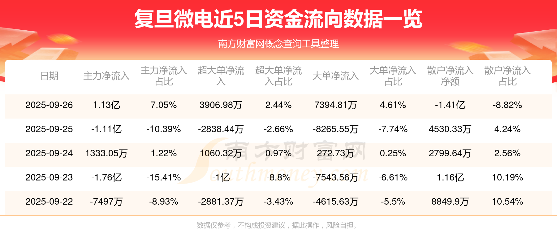 9月26日消息,復(fù)旦微電9月26日主力凈流入1.13億元,超大單凈流入3906.98萬元,大單凈流入7394.81萬元,散戶凈流出1.41億元。