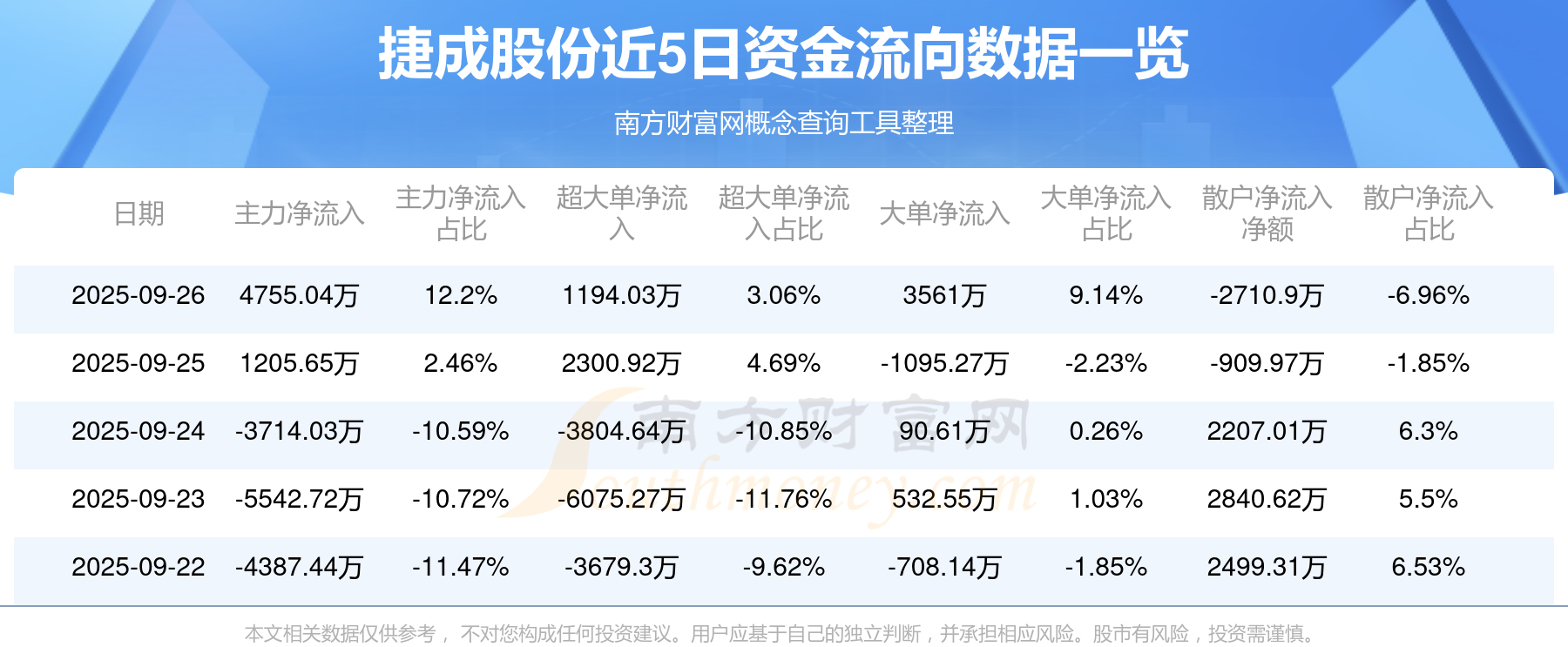 9月26日消息,捷成股份主力凈流入4755.04萬元,超大單凈流入1194.03萬元,散戶凈流出2710.9萬元。