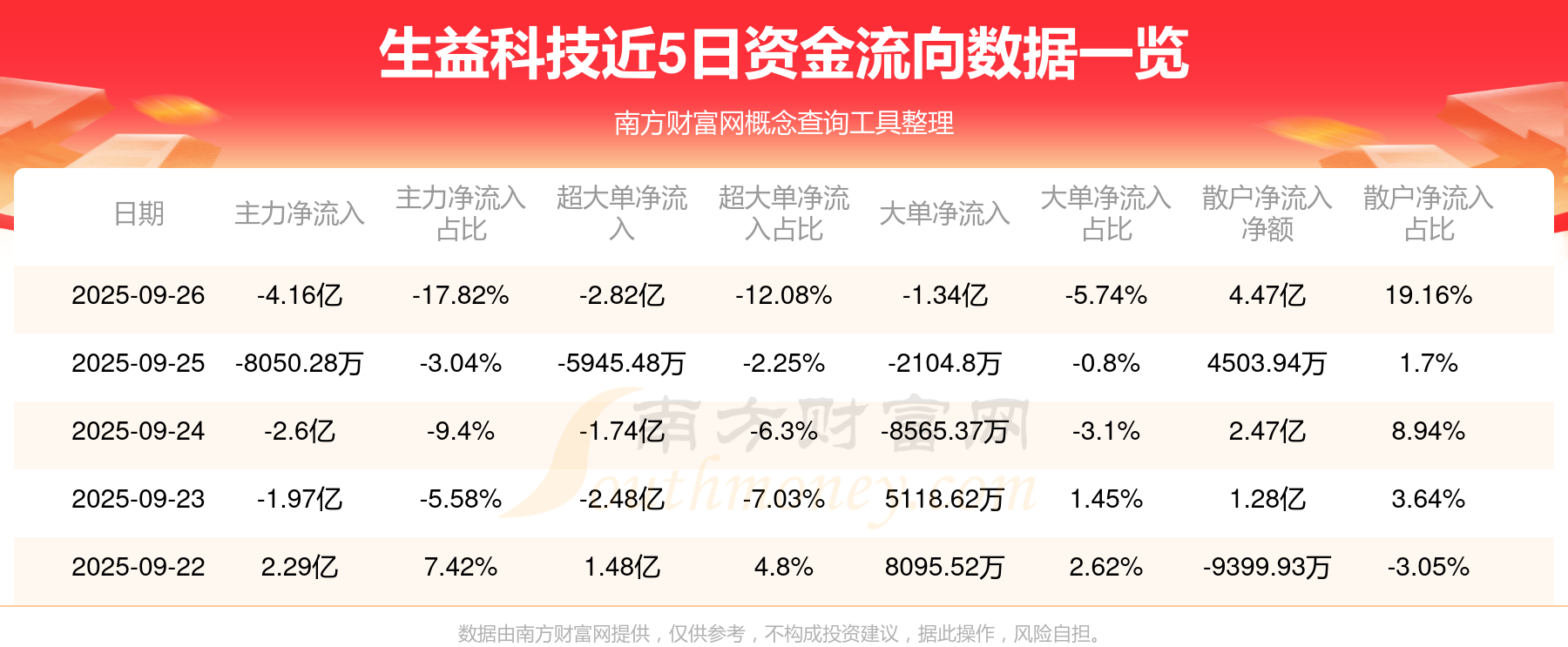 9月26日消息,生益科技資金凈流出4.16億元,超大單資金凈流出2.82億元,換手率1.78%,成交金額23.17億元。