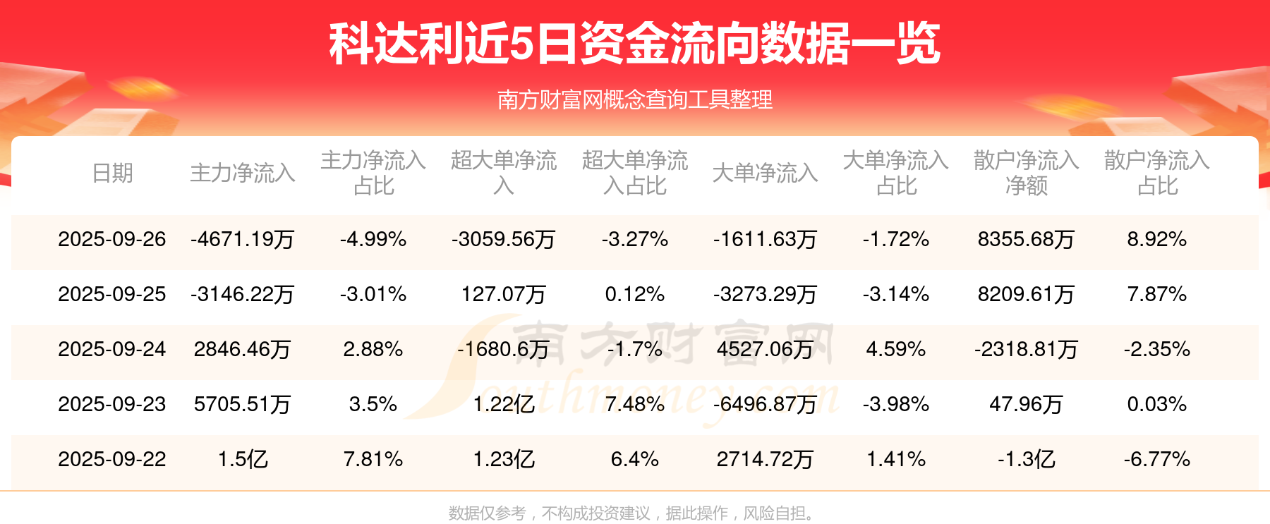 9月26日消息,科達利9月26日主力凈流出4671.19萬元,超大單凈流出3059.56萬元,大單凈流出1611.63萬元,散戶凈流入8355.68萬元。