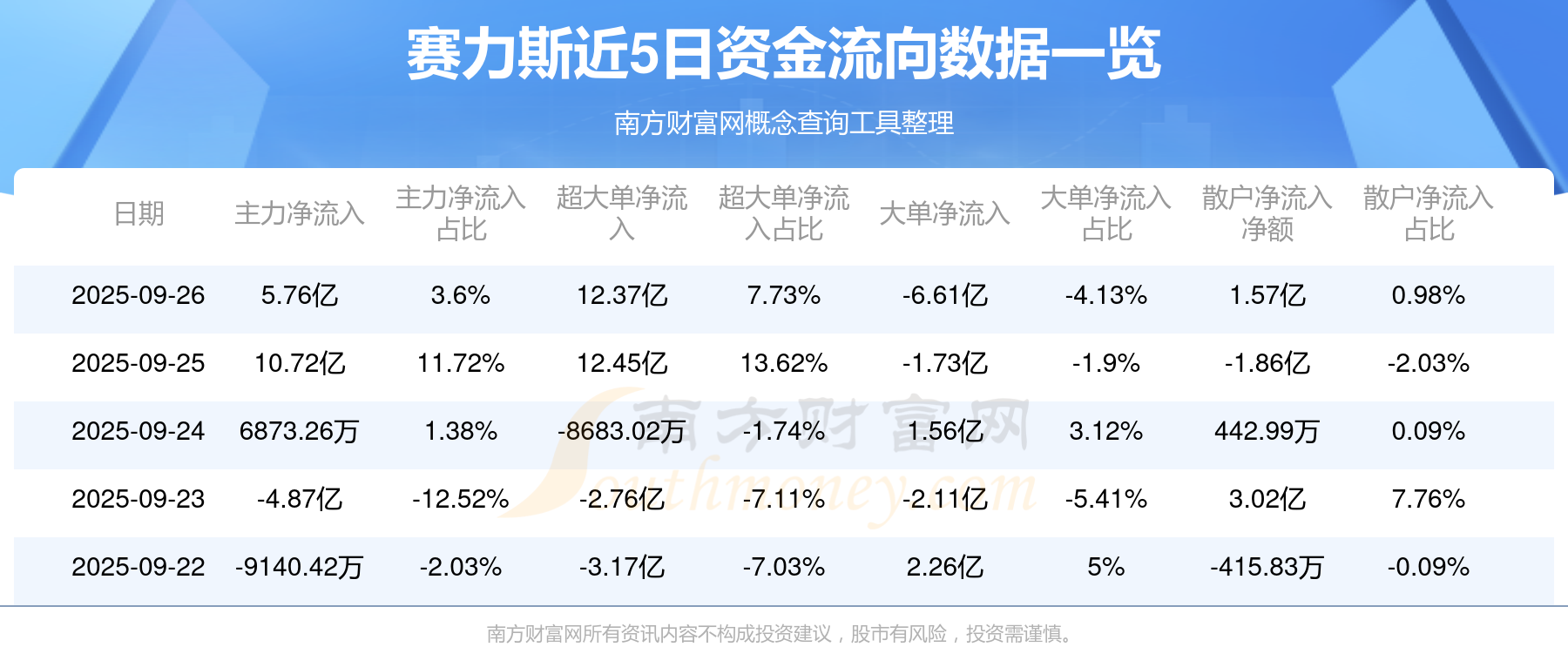 近5日資金流向一覽見下表: