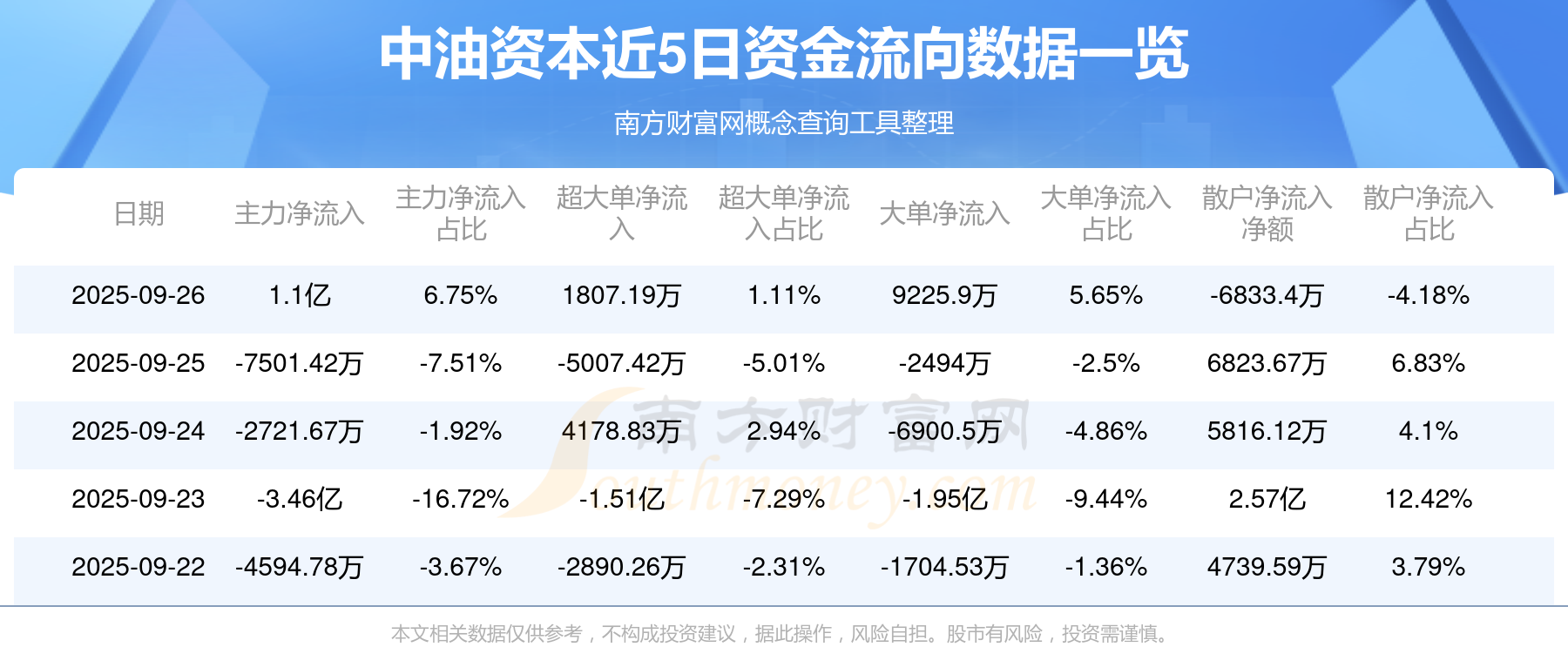 近5日資金流向一覽見下表: