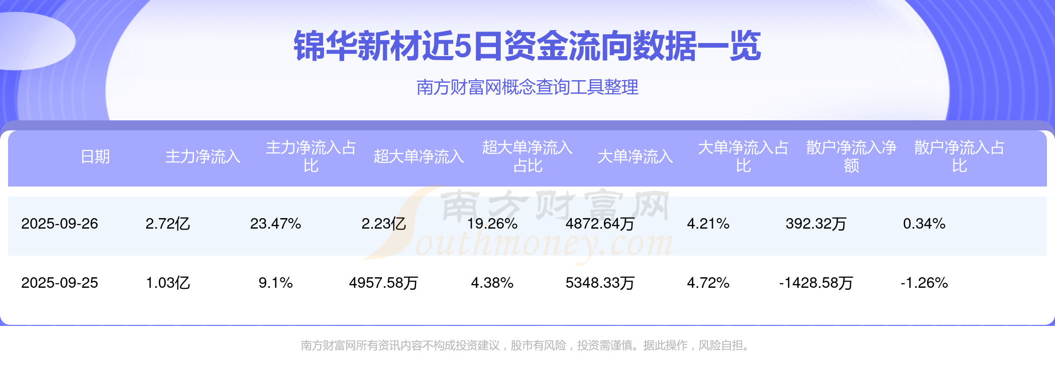 資金流向數(shù)據(jù)方面,9月26日主力資金凈流流入2.72億元,超大單資金凈流入2.23億元,大單資金凈流入4872.64萬元,散戶資金凈流入392.32萬元。