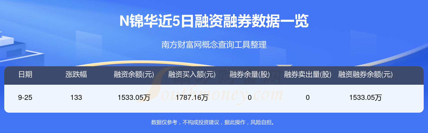 9月25日N錦華融券信息顯示,融資方面,當(dāng)日融資買入1787.16萬元,融資償還254.11萬元,融資凈買額1533.05萬元。近5日融資融券數(shù)據(jù)一覽見下表: