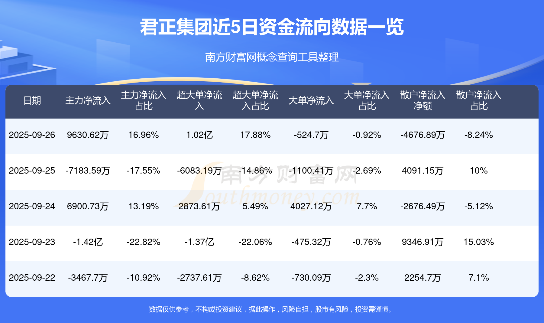 9月26日消息,君正集團(tuán)資金凈流入9630.62萬元,超大單資金凈流入1.02億元,換手率1.28%,成交金額5.68億元。