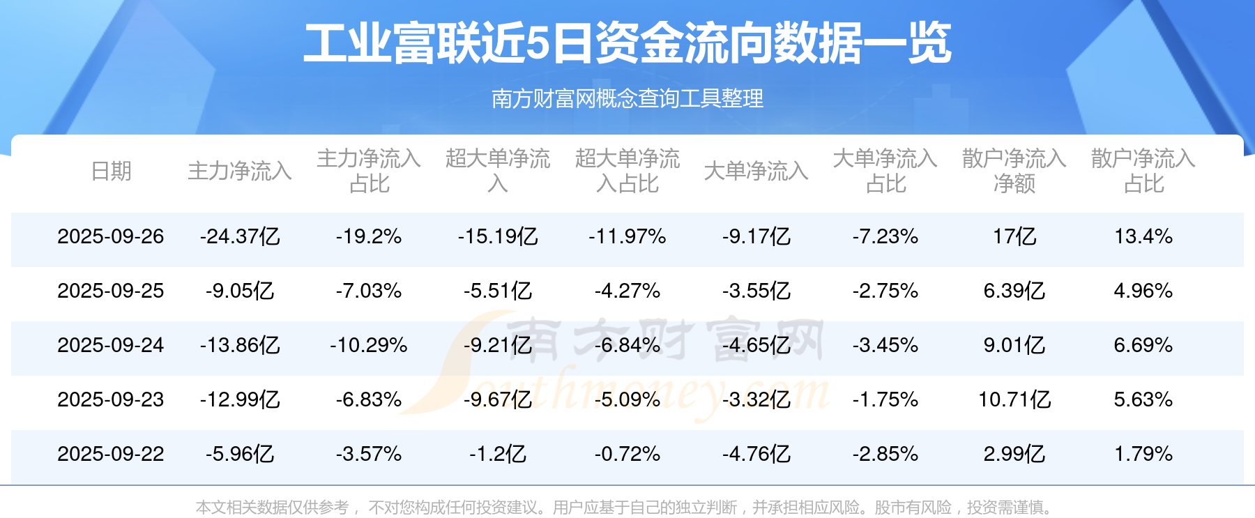9月26日消息,工業(yè)富聯(lián)9月26日主力資金凈流出24.37億元,超大單資金凈流出15.19億元,大單資金凈流出9.17億元,散戶資金凈流入17億元。