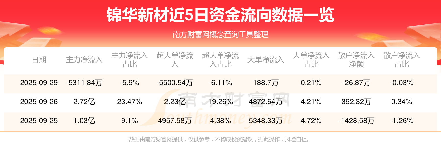 近5日資金流向一覽見下表:
