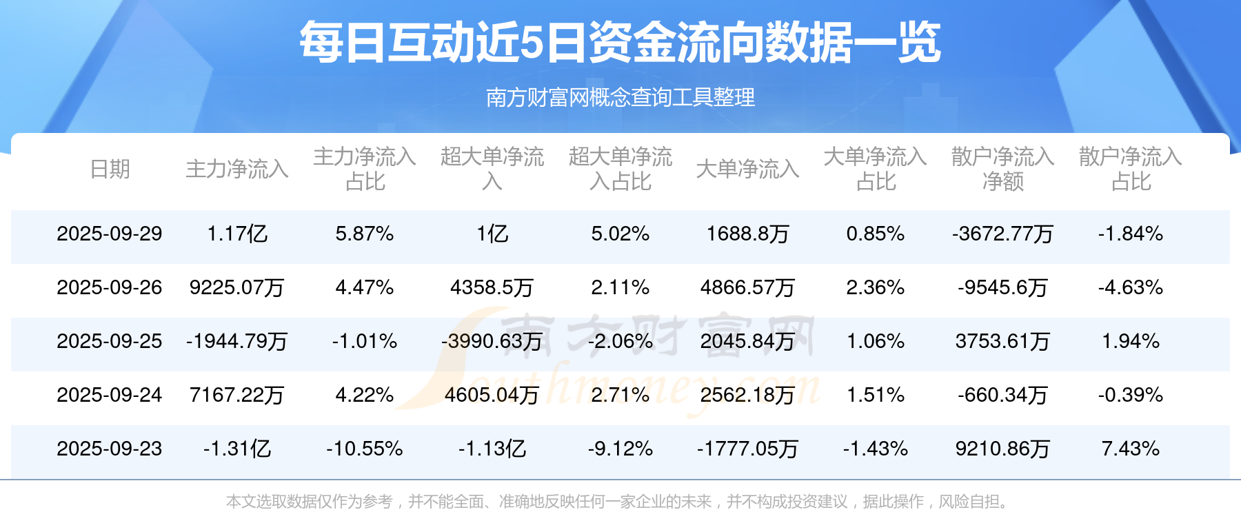 近5日資金流向一覽見下表: