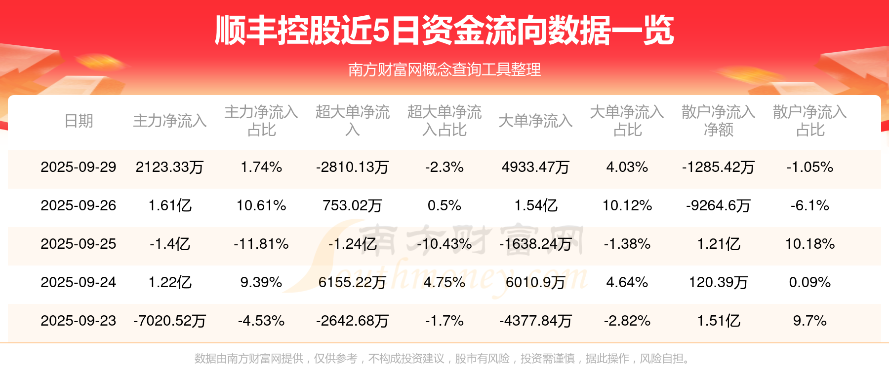 9月29日消息,順豐控股主力凈流入2123.33萬元,超大單凈流出2810.13萬元,散戶凈流出1285.42萬元。