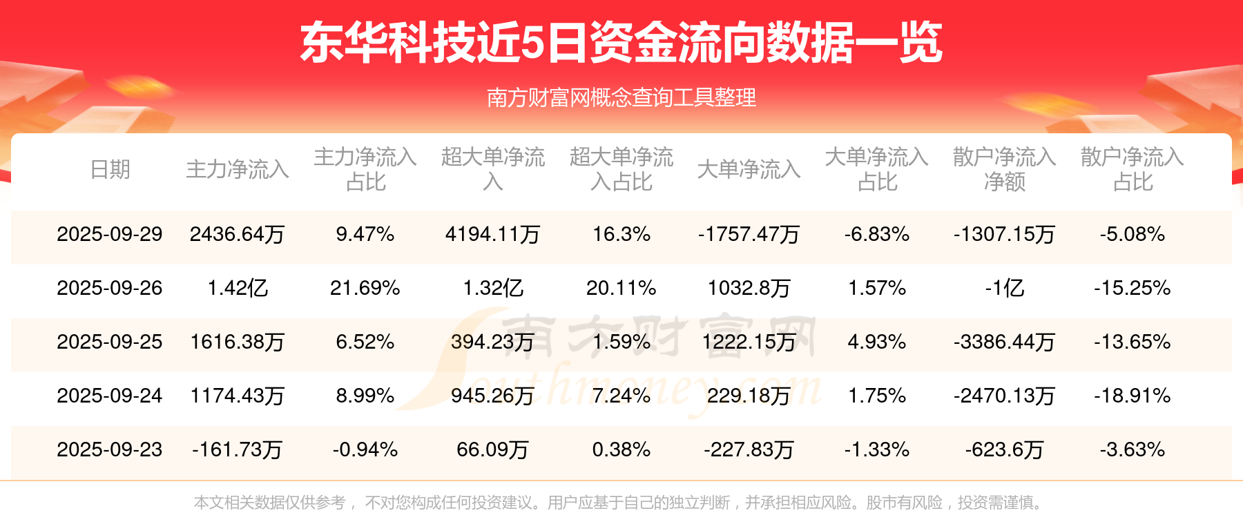 9月29日消息,東華科技主力凈流入2436.64萬元,超大單凈流入4194.11萬元,散戶凈流出1307.15萬元。